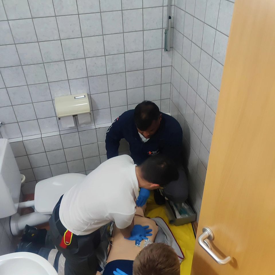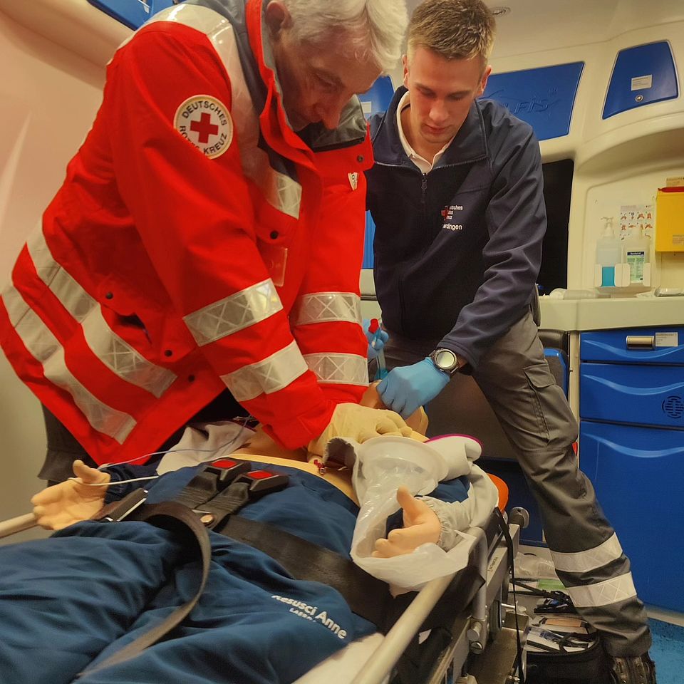 Neben der "klassischen" Reanimation auf der Übungsmatte haben wir vor allem auch auf beengtem Raum und im Fahrzeug geübt.
